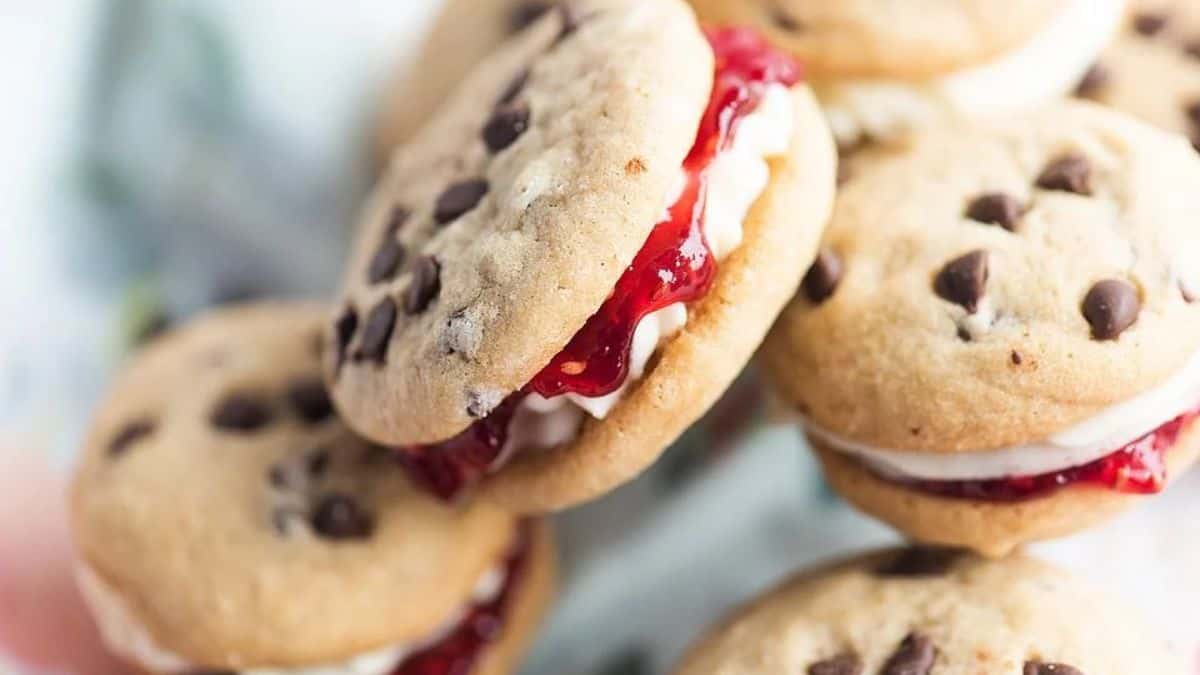 These sandwich cookies layer soft chocolate chip cookies with a rich vanilla buttercream and tart raspberry jam. The mix of flavors hits the perfect balance between sweet and tangy. They’re fun to assemble and perfect for sharing or gifting during holidays.