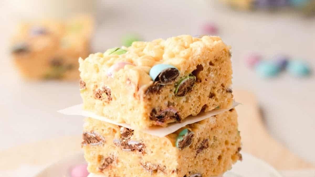 Peanut butter, marshmallows, and crispy rice cereal come together for a chewy, gooey classic that’s always a hit. The M&M’s add crunch and color, making these bars great for parties or school lunches. You’ll appreciate how quick and simple this recipe is to throw together.