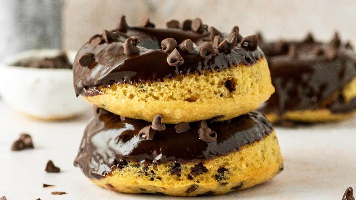 Baked instead of fried, these donuts are filled with mini chocolate chips and topped with glossy chocolate glaze. They come out soft, moist, and ready in no time. Serve them warm for breakfast or as a sweet afternoon treat.