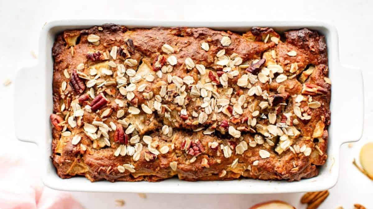 Fresh apples, oats, and cinnamon create a loaf that slices cleanly. Plus, the quick prep keeps things easy on busy days. This bread works for breakfast or light desserts.
