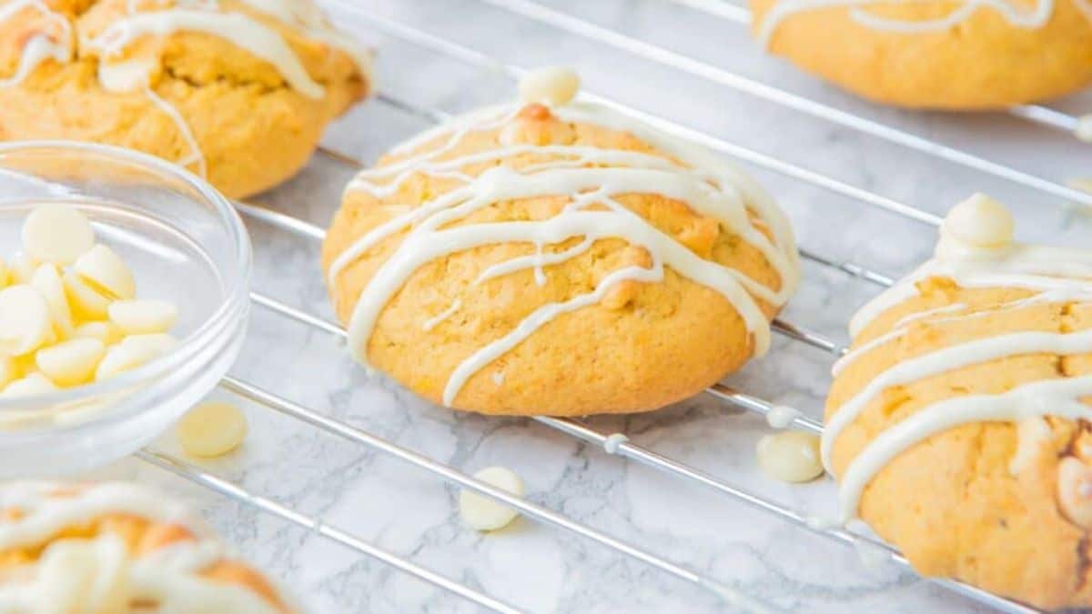 Remove the cookies from the oven and allow them to cool on the baking sheet for a few minutes before transferring them to a wire rack to cool completely. Once cooled, top with extra white chocolate chips and drizzle melted white chocolate over the top.