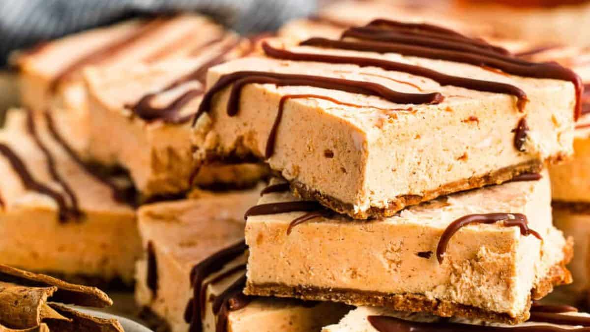 Pumpkin spice season calls for easy desserts, and these no-bake bars are right on theme. With a Biscoff cookie crust and a creamy spiced filling, they hit all the right fall flavors. Chill until firm, then slice into squares and serve.