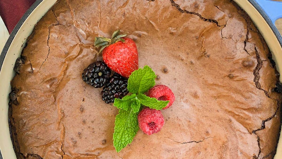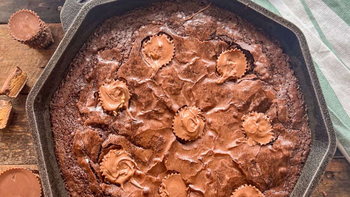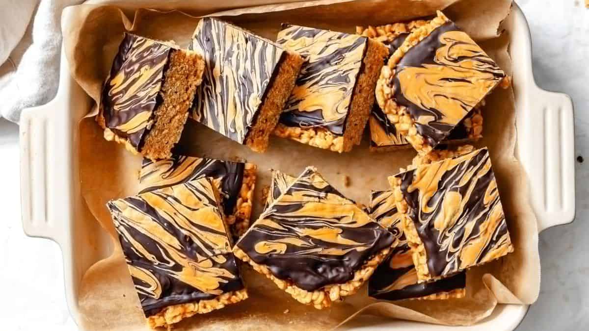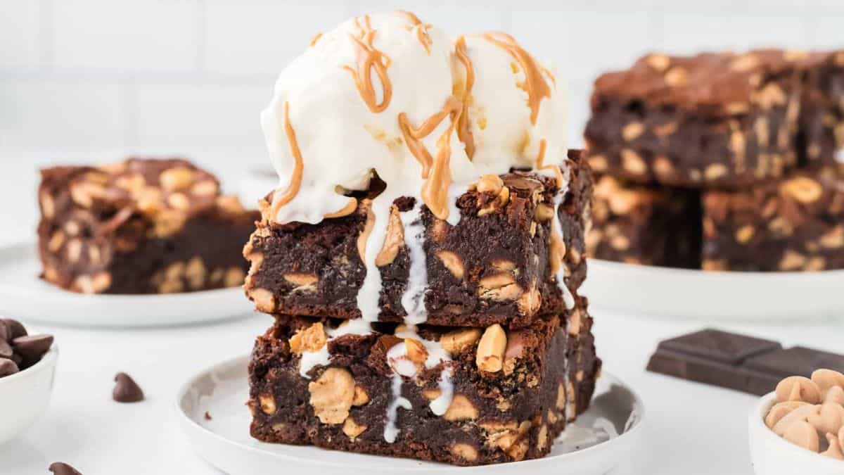 Chocolate and peanut butter layers bake together smoothly. The texture stays dense without drying out. These often appear among best dinner desserts for groups.