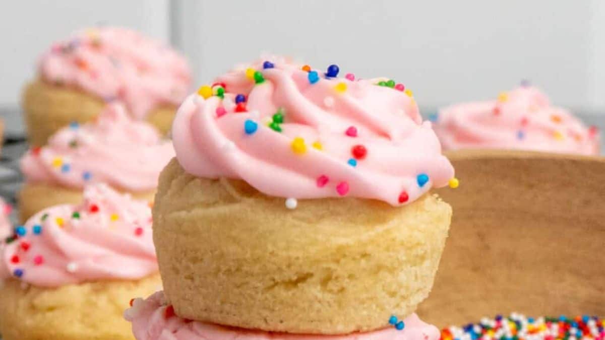 Soft sugar cookie cups hold a creamy, tangy filling for a fun dessert option. They’re buttery, slightly chewy, and easy to customize with sprinkles or fruit. Their small size makes them fit right in with other bite size desserts.