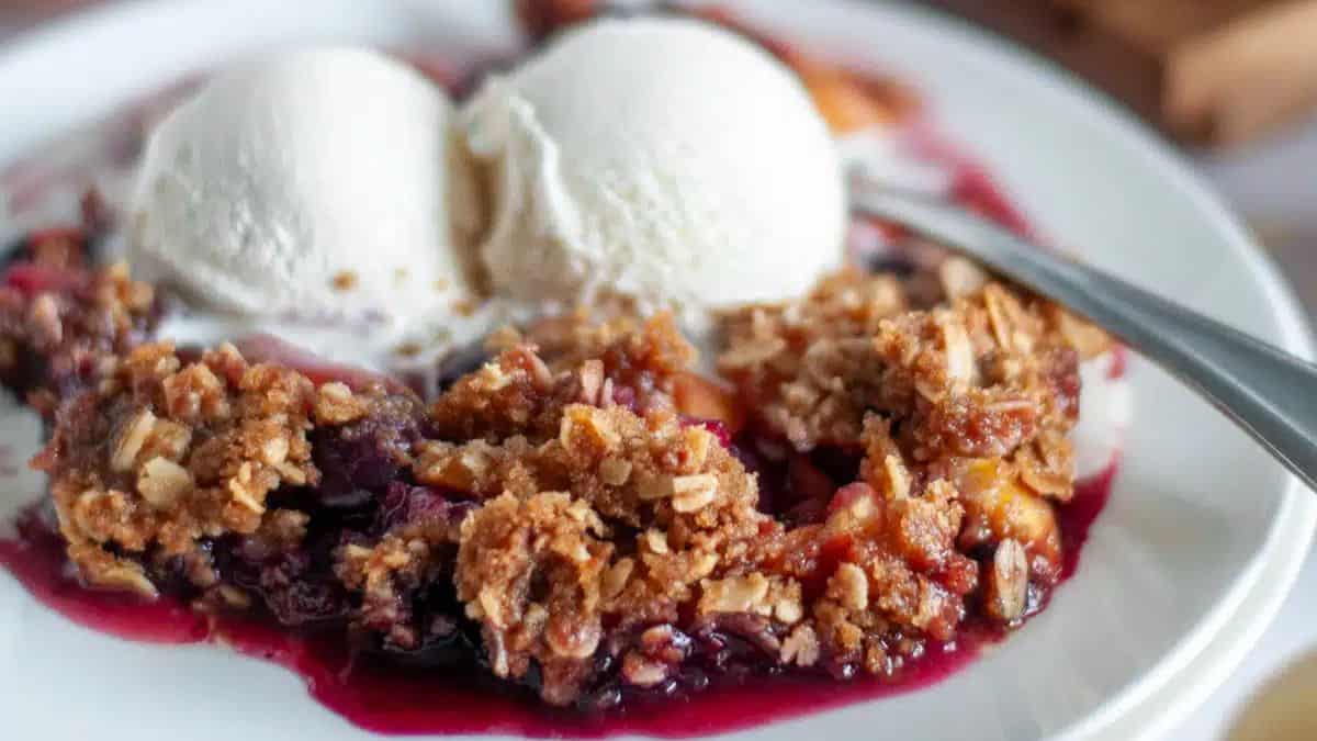 This crumble blends two fruits into a sturdy filling. As it bakes, the topping turns crisp without drying out. It works well for casual dinners or weekend baking.