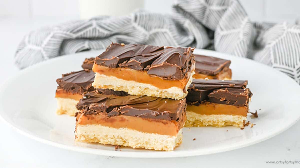 These homemade bars mimic the candy with a shortbread base, caramel center, and chocolate top. They’re easy to slice and stack, so they travel well. Perfect for bake sales or party trays. You’ll want to chill them before cutting for clean edges.