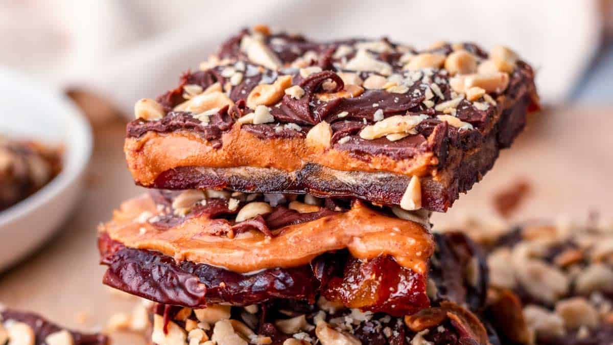 These bars layer chocolate, peanut butter chips, and sweetened condensed milk on a peanut butter cookie base. Everything bakes together into a rich, sweet bar. They cool best overnight in the fridge. Slice them small—they’re decadent.