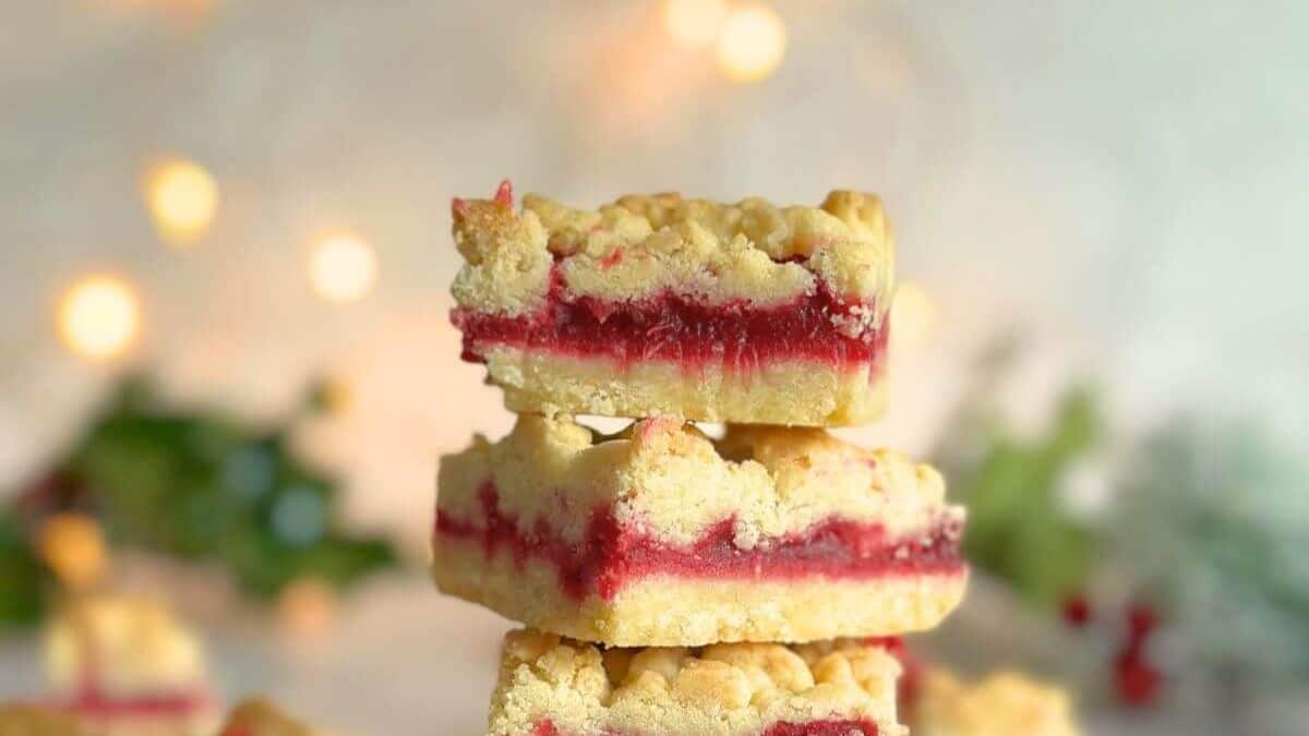 These bars combine tart cranberries with a buttery, oat-filled crumble. They’re great served warm or at room temp. The contrast between sweet and tangy keeps things balanced. They’re easy to cut and even easier to eat.