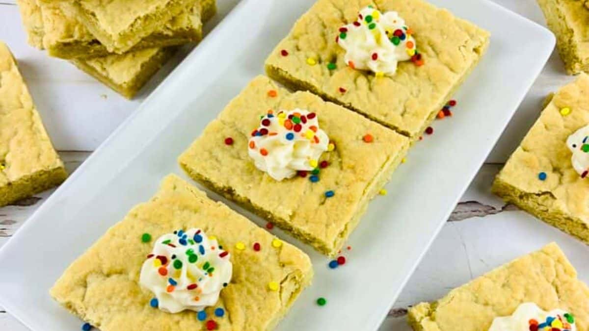 Baked in a sheet pan, these sugar cookie bars are easy to slice and serve. The dough stays soft but holds its shape. Add frosting or sprinkles for color. They’re simple enough for weeknights and crowd-friendly too.