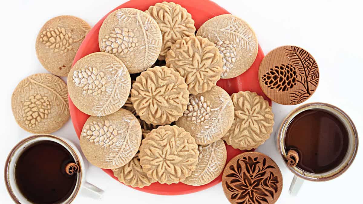 Apple cider stamped cookies are crisp butter cookies infused with warm apple spice. They hold the stamped designs well after baking. Perfect for tea time or gifting, these cookies have a delicate crunch. The spiced flavor pairs nicely with a cup of hot cider.