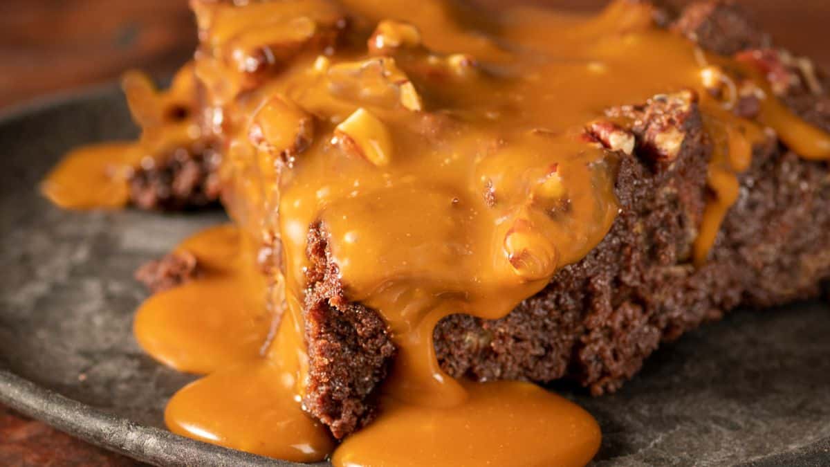 A rich topping of pecans and caramel bakes right into this cake. It’s warm, gooey, and perfect for sharing. Ideal for holidays when you want a dessert that feels special but isn’t hard to prepare.