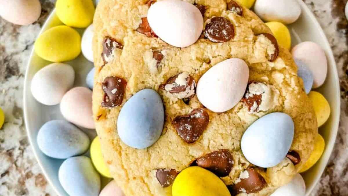 These cookies take classic chocolate chip dough and add crushed Cadbury Mini Eggs for extra chocolatey goodness. They have the perfect balance of chewy texture and candy crunch. If Easter chocolate chip cookies with a little extra sweetness sound good, these are a must-try.