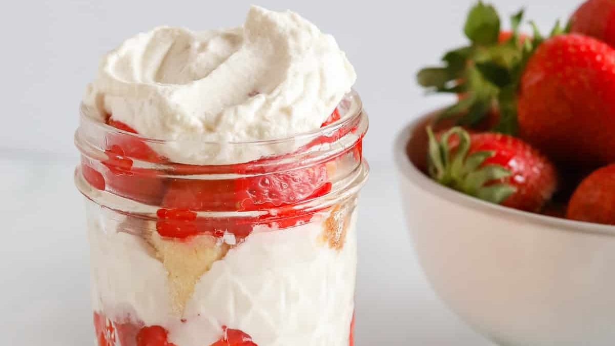 These parfaits look like you spent forever on them, but they come together in a snap. I just layer cake cubes, strawberries, and whipped cream in little jars, and they turn out adorable every time. They travel well too, which makes them perfect for parties. Bonus: no baking required if you use store-bought cake.