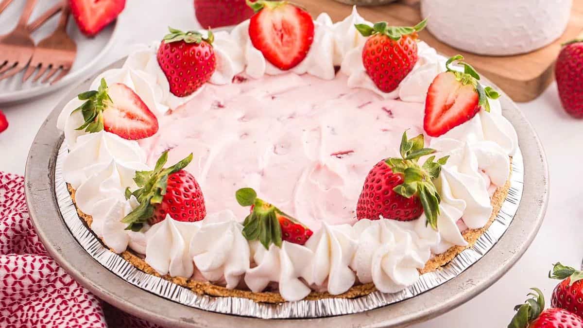 This no-bake pie comes together fast and delivers a creamy, fruity finish. With fresh strawberries, lemon juice, and a graham cracker crust, it’s easy to prep ahead. Chill it until firm, then slice and serve. It’s especially great for warm-weather parties.