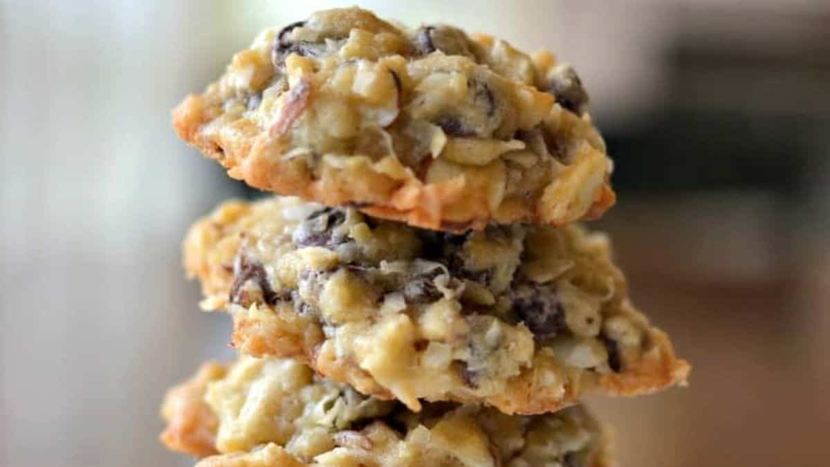 A crisp cookie base topped with caramel, toasted coconut, and a drizzle of chocolate makes these both indulgent and eye-catching. Their layered textures make them look bakery-made with minimal effort. If you’re after easy but fancy cookies, these deliver big flavor in every bite.