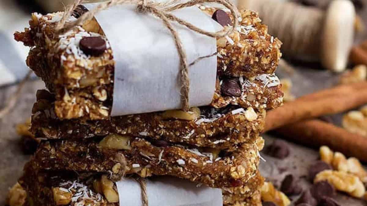 These homemade granola bars are chewy, slightly crunchy, and naturally sweetened with dates. They’re quick to prepare and don’t need to be baked. You can mix in other ingredients like dried fruit or seeds to switch things up. These make a good snack option for busy days.