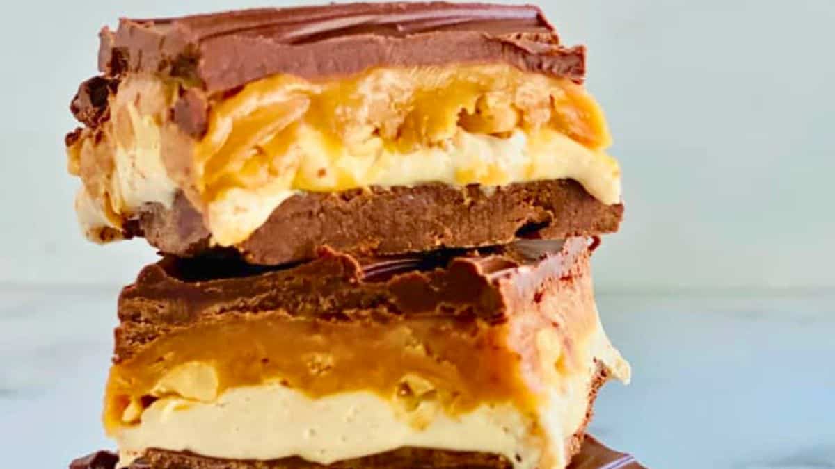 These are rich, no-bake bars with three solid layers, crunchy, creamy, and chocolatey. They chill up firm in the fridge and slice clean for neat squares every time. I usually stash a few in the freezer so they’re ready whenever I want one. They’re great with coffee or eaten straight out of the pan.