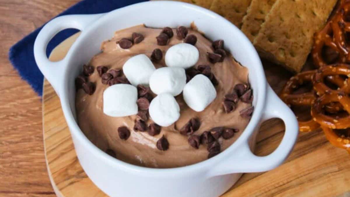 I threw this together with just three ingredients, and it tasted like marshmallows melted into pudding. It’s perfect with cookies, graham crackers, or whatever crunchy thing you’ve got around. You don’t need to chill or bake anything. Clean-up takes longer than making it.