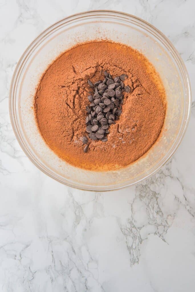 - Prepare the batter: In a large mixing bowl, combine the eggs, powdered sugar, and granulated sugar. Whisk with a hand whisk until well blended.Sift in the cocoa powder and salt to avoid lumps. Stir to combine using a spatula or whisk.Fold in the chocolate chips until fully incorporated. The dough should have a consistency that is not too runny but not overly thick.
