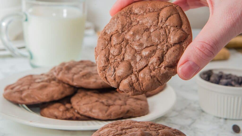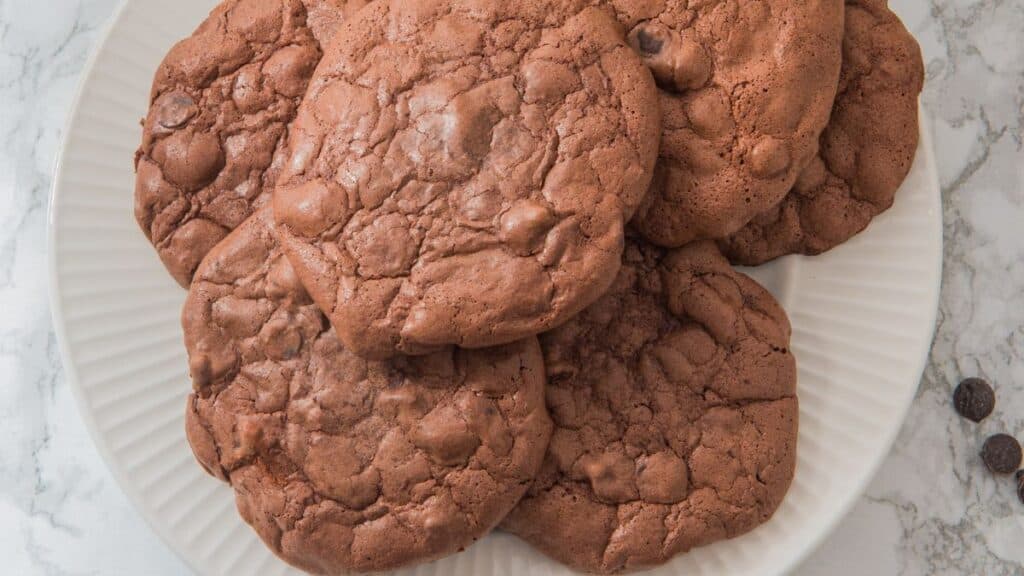- Don’t overbake: These cookies are best slightly underbaked for a fudgy texture. Look for a shiny, crackly surface.
