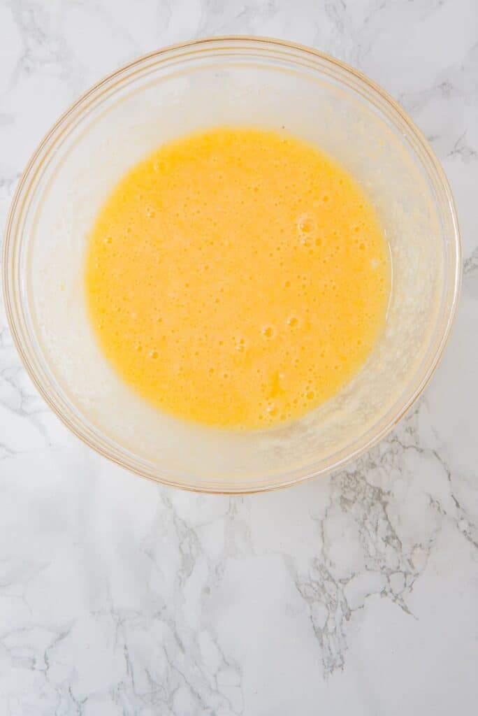 Prepare the batter: In a large mixing bowl, combine the eggs, powdered sugar, and granulated