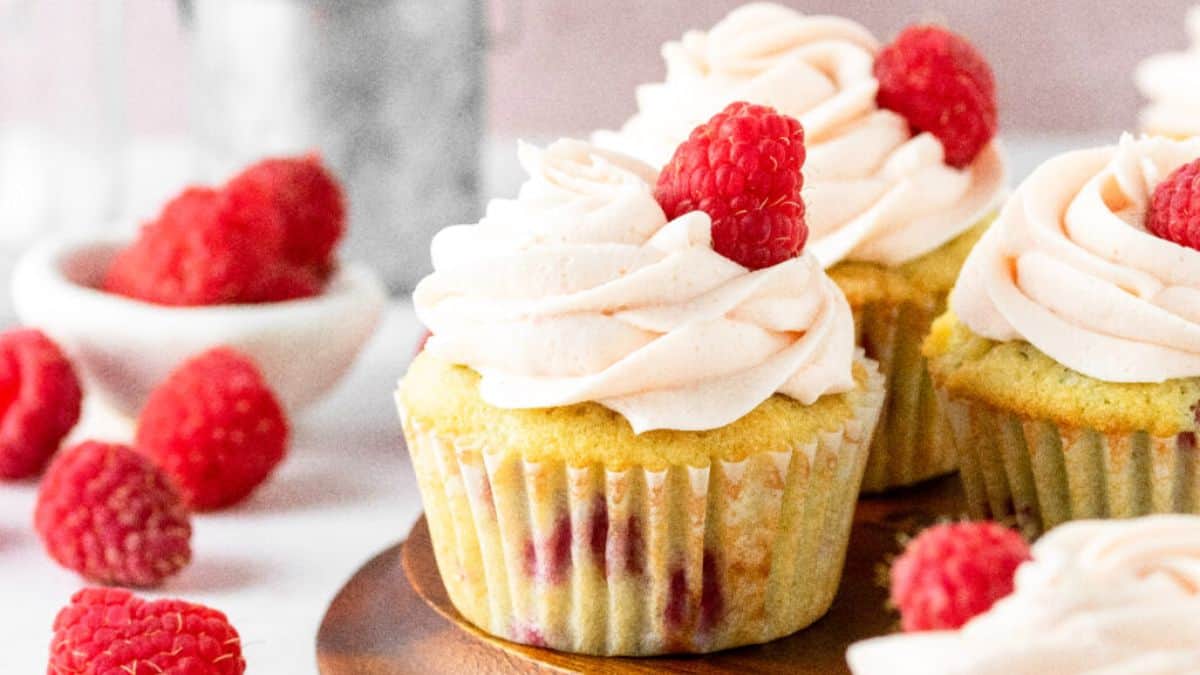 These vanilla cupcakes are filled with fresh raspberries and topped with a raspberry puree buttercream. They’re soft, moist, and hold up well even after a day in the fridge. If you love fruity desserts, these will hit the spot. Add sprinkles for a fun touch.