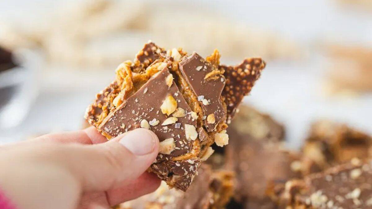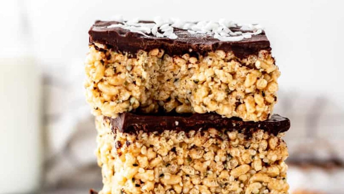 No marshmallows, no mess. These bars rely on peanut butter and dark chocolate to do the heavy lifting. They’re great for a grab-and-go bite that won’t wreck your day.