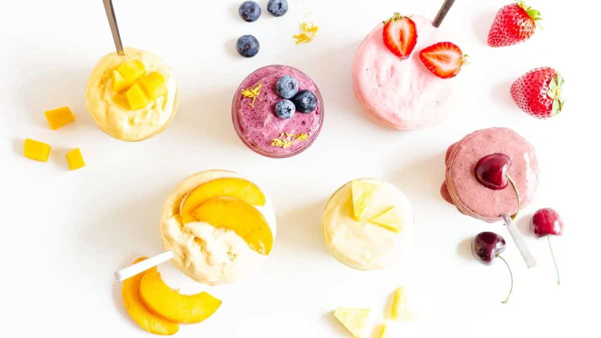 This dairy-free dessert comes together with frozen fruit and your choice of mix-ins. It works with or without bananas and offers five fun variations to try. There’s no added sugar and no churning involved. It’s a good choice if you’re looking for lighter ice cream recipes.