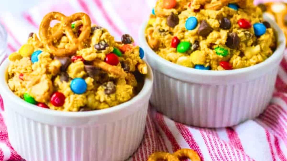 This cookie dough skips the oven but keeps all the fun. It’s packed with chocolate candies, sprinkles, and mini chocolate chips, and it’s safe to eat raw. The recipe is simple enough for kids to help with, making it a great pick for your list of kid-friendly cookie recipes. Keep it chilled for a quick treat anytime.
