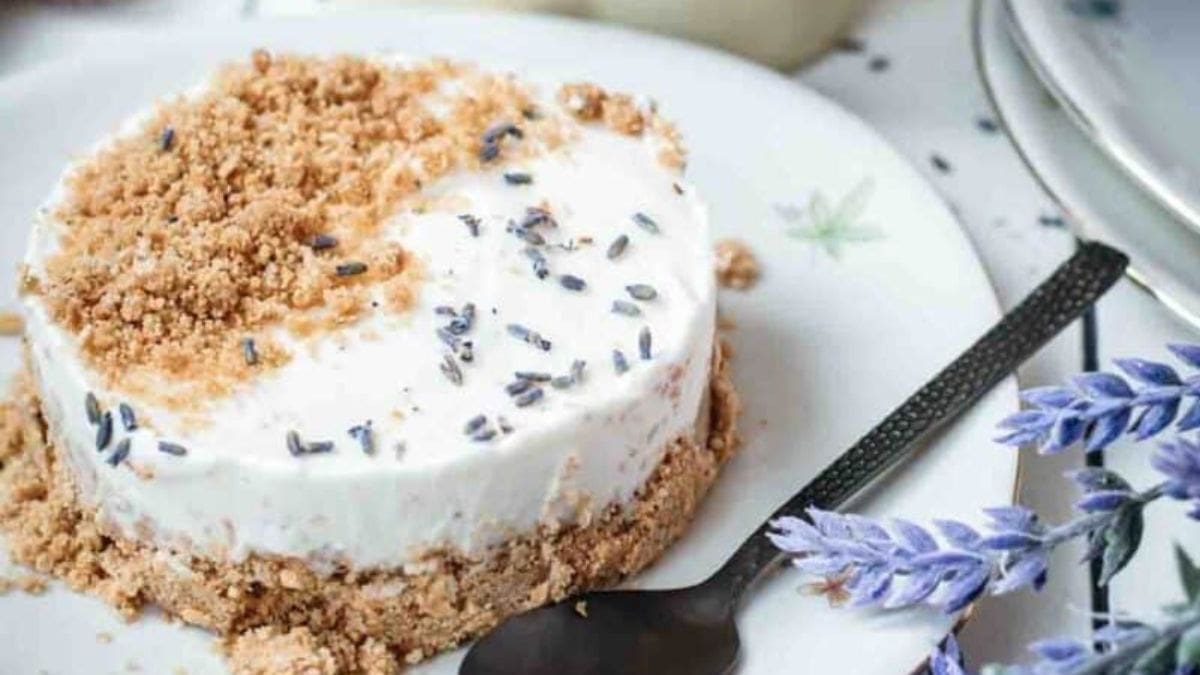 This recipe blends lemon zest, ricotta, and limoncello for a cheesecake that’s light and refreshing. The graham cracker crust includes honey and lavender for extra flavor. It works well as a summer dessert and doesn’t require any baking. Just prep, chill, and serve.