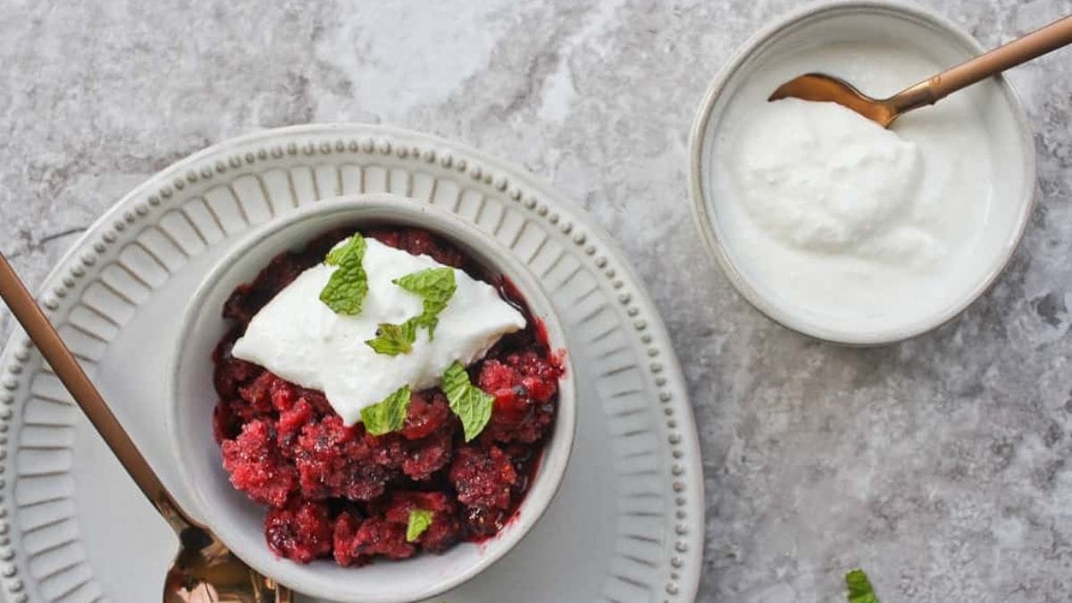 This icy granita is made from blended berries and a touch of syrup, then topped with whipped ricotta. It’s refreshing without needing special equipment. A good way to use fruit when you want something cool and simple.