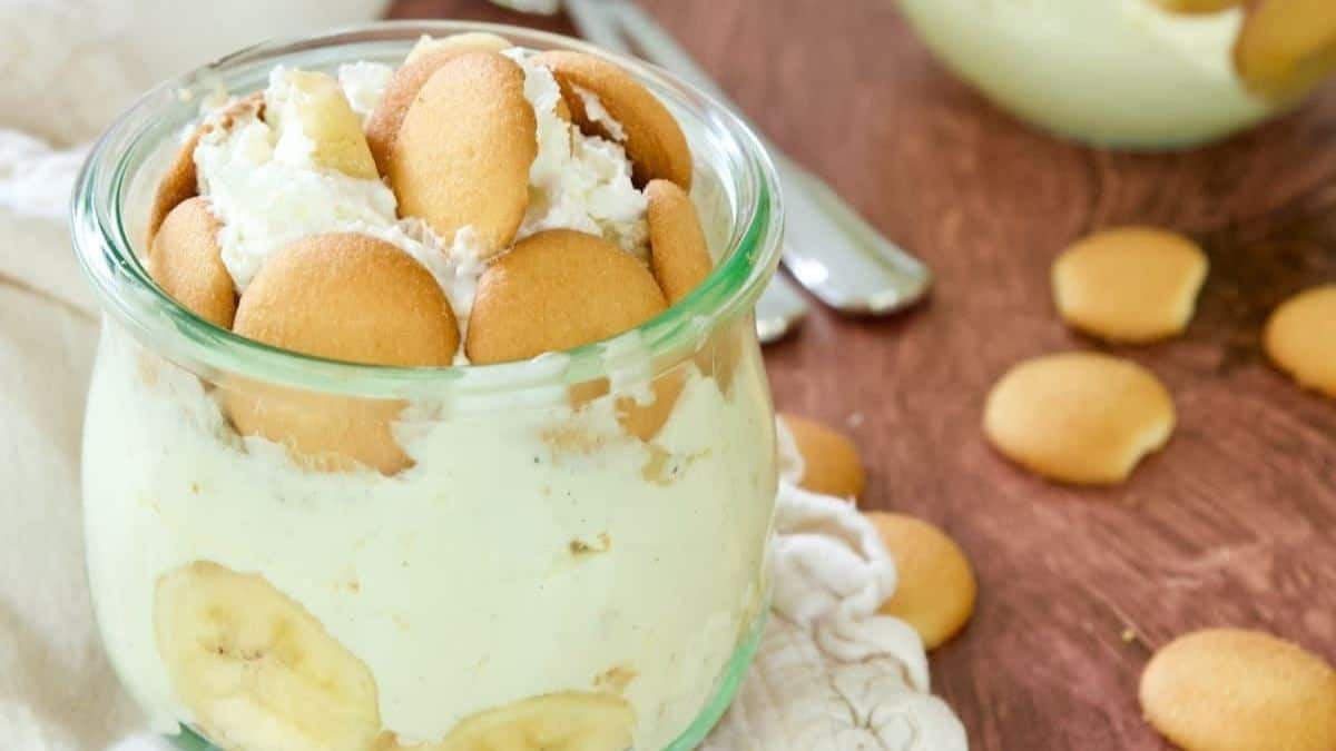 Creamy layers of pudding, bananas, and cookies come together in this famous dessert. It’s rich but still easy to prepare at home. A dependable recipe when you want a no-fuss crowd-pleaser.