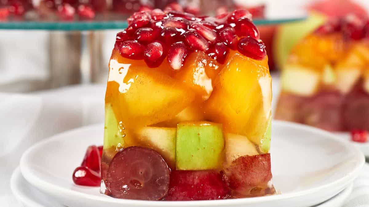 This dessert feels bright and fun, especially with all the fresh fruit inside. The jello sets just firm enough to hold everything together without being rubbery. I liked that each slice had a little bit of everything in it. It’s a great no-bake option when you want something colorful and easy.