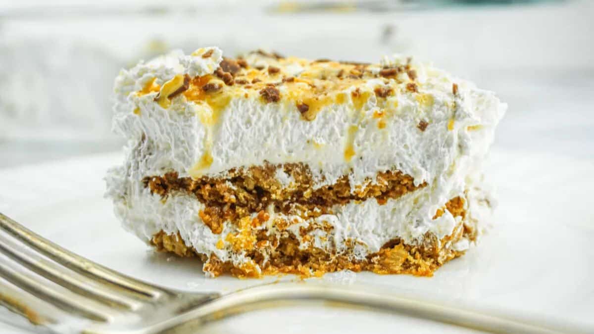 Layers of crescent dough, rich cream cheese, and cinnamon sugar give these bars a warm churro flavor without the fryer. A drizzle of honey ties it all together, making each square sweet and creamy. They’re easy to bake in a single pan, then cut and serve for a crowd. These bars are just the thing for parties or weeknight desserts.
