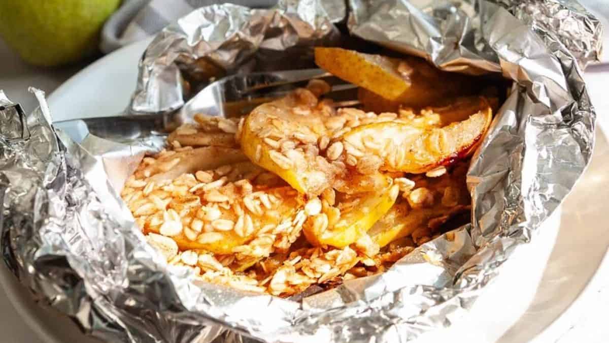 These individual crisps are baked in foil with spiced pears and a crunchy oat topping. They work just as well on the grill or campfire as in the oven. The warm spices of cardamom and ginger complement the fruit beautifully. They’re a fun, low-stress way to enjoy pear dessert recipes outdoors.