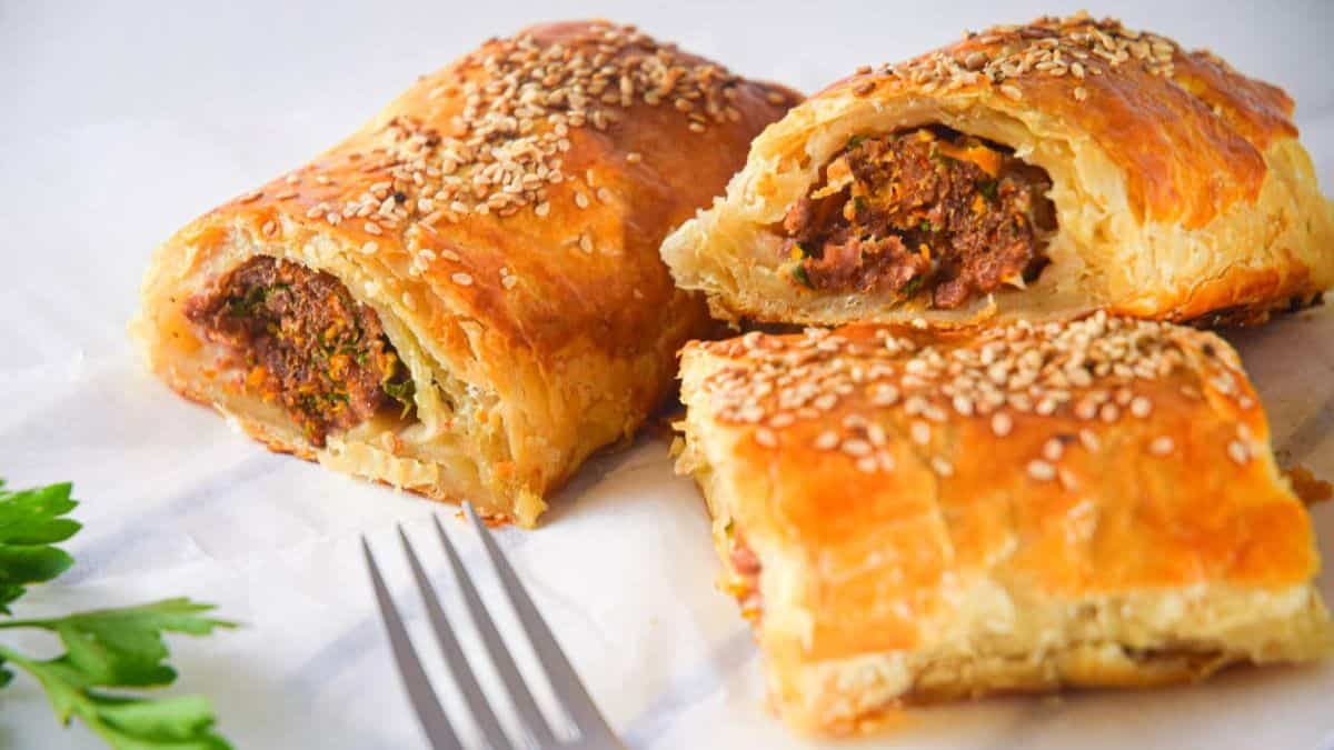 These sausage rolls mix pork, beef, and smoked paprika for bold flavor in a flaky pastry shell. They also include veggies like carrots and onions, which round things out. I love them as a party snack, but they work for a quick lunch, too. Just bake and go.