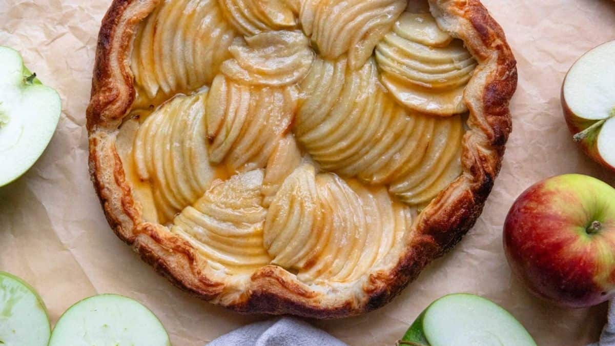 This galette is filled with tart apples and topped with a simple apricot glaze. The puff pastry bakes up crisp and holds everything together with minimal effort. It’s a solid pick when you want a fall dessert without too much prep.