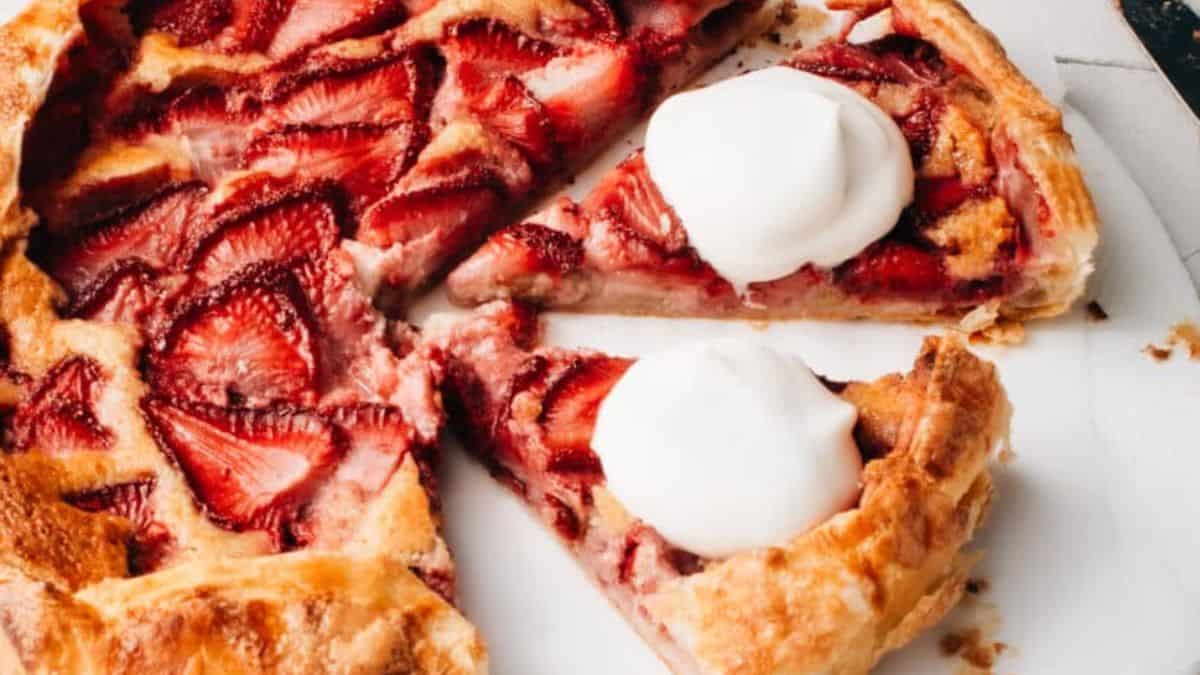 Juicy strawberries sit on top of an almond cream base in this simple dessert. The puff pastry rises around the fruit, forming golden edges that hold in all the flavor. It works well with fresh berries and takes less than an hour to make.