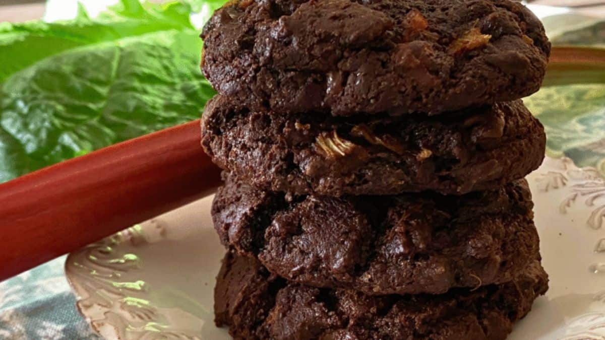 These cookies are rich and chocolatey, with chewy edges and pops of tart rhubarb throughout. They strike a fun balance of sweet and tangy in every bite. They’re also great for packing into lunches or sharing with friends.