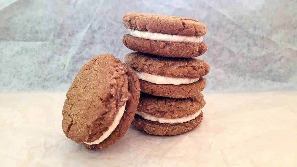 Spiced gingerbread cookies and a creamy filling make these perfect for the holiday season. Their cozy flavors and fun, layered design make them an exciting addition to filled cookie recipes. These cookies are festive and versatile, perfect for any seasonal gathering.