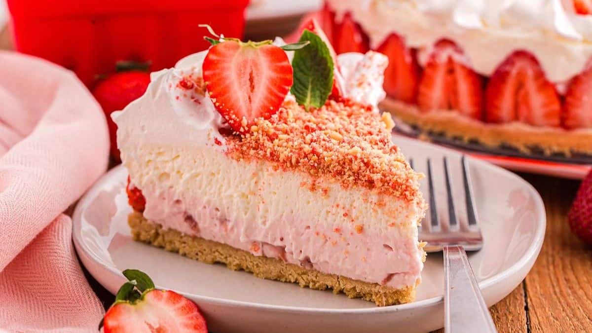 This layered dessert combines classic cheesecake with the taste of strawberry shortcake. A crunchy cookie crust holds together creamy vanilla and strawberry layers, while a crumble topping adds extra texture. It’s a smart choice for special events since it looks and tastes impressive. This one stands out among shortcake recipes for its bold mix of textures.