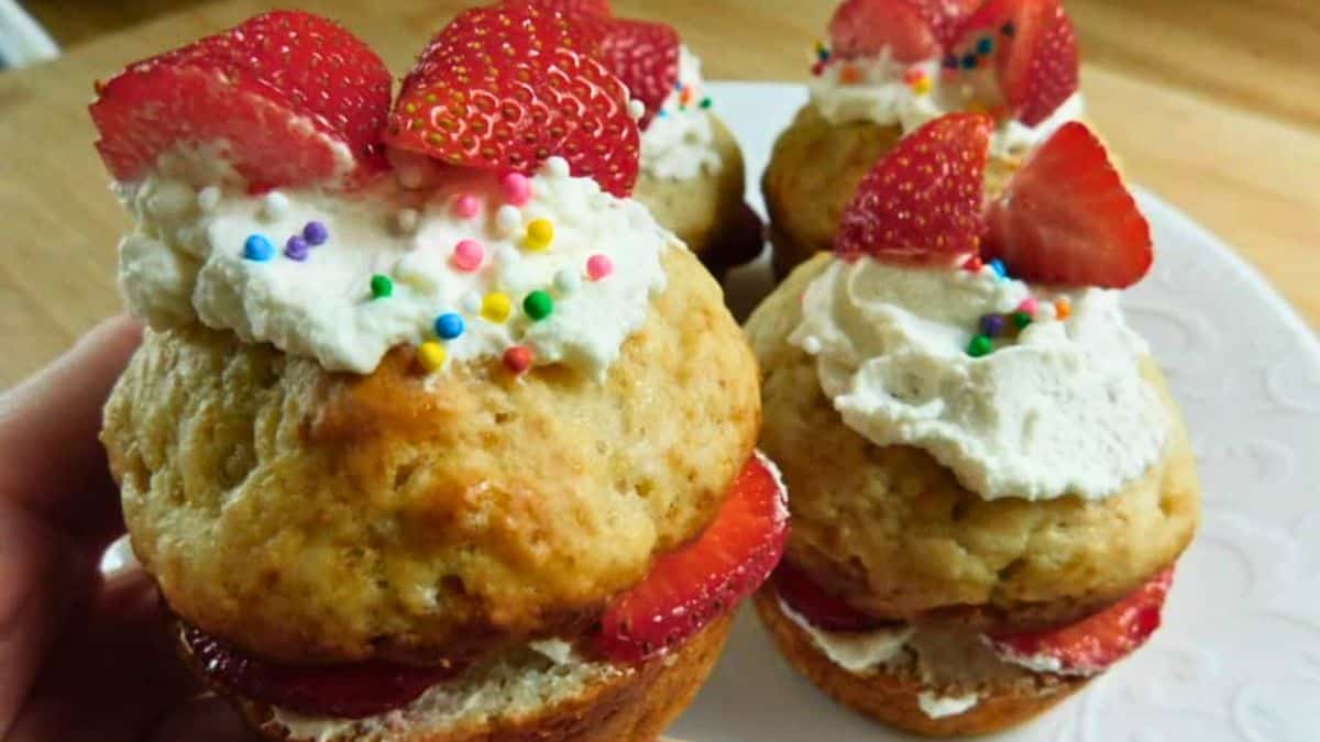 These muffins bring the flavor of strawberry shortcake into a quick, easy-to-serve format. Fresh strawberries and real whipped cream keep it classic, while the muffin shape makes it easy to enjoy on the go. They’re light but still feel like a full dessert. This is one of those shortcake recipes you can prep ahead for holidays or gatherings.