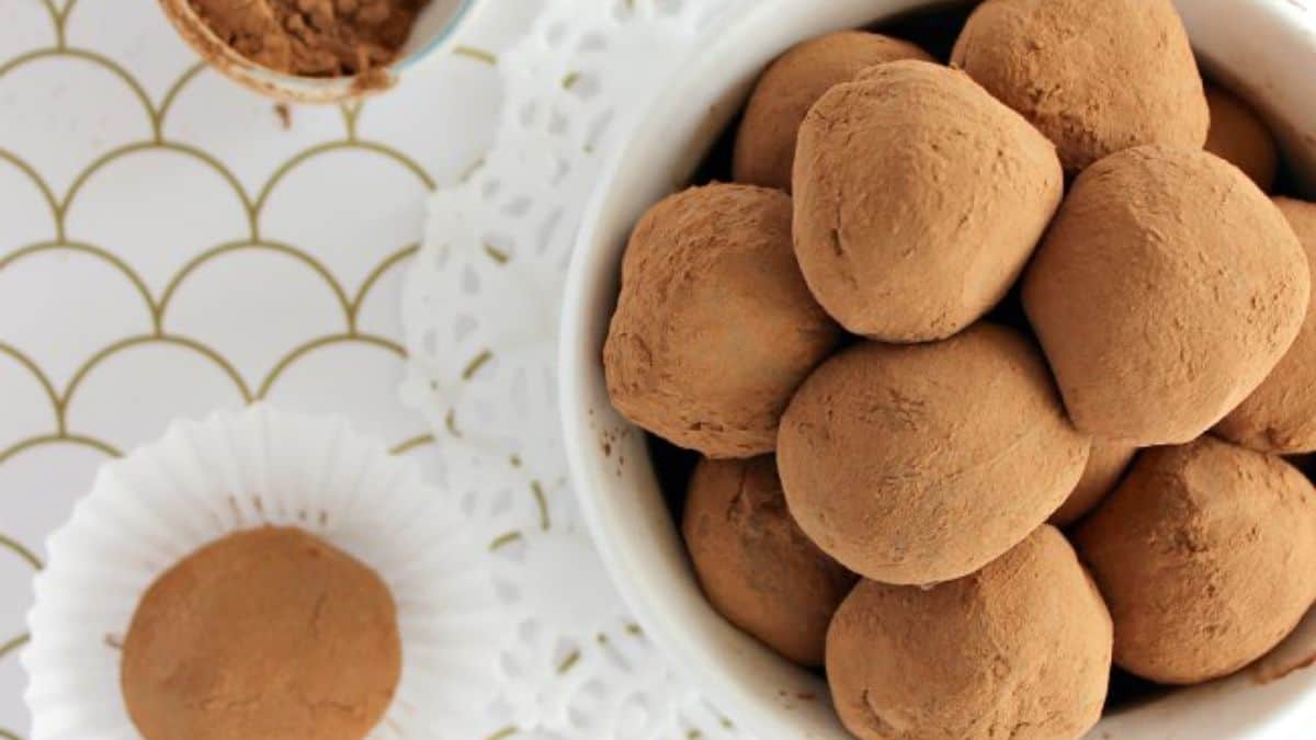 These truffles form into smooth, bite-size treats with only three ingredients. They set nicely in the fridge, so they stay firm without much effort. You can roll them in cocoa or nuts for added texture. They’re also easy to prepare ahead for holidays.
