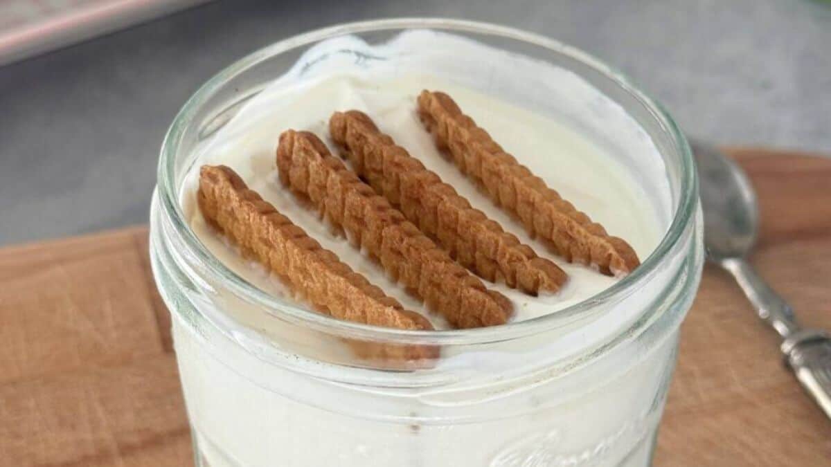 Biscuits soften into a creamy base while Greek yogurt firms into a light, airy cheesecake. It sets overnight in the fridge for a quick, fuss-free dessert. The texture is soft and satisfying without being heavy.